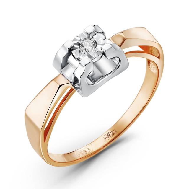 Помолвочное кольцо из комбинированного золота с бриллиантом (055018)