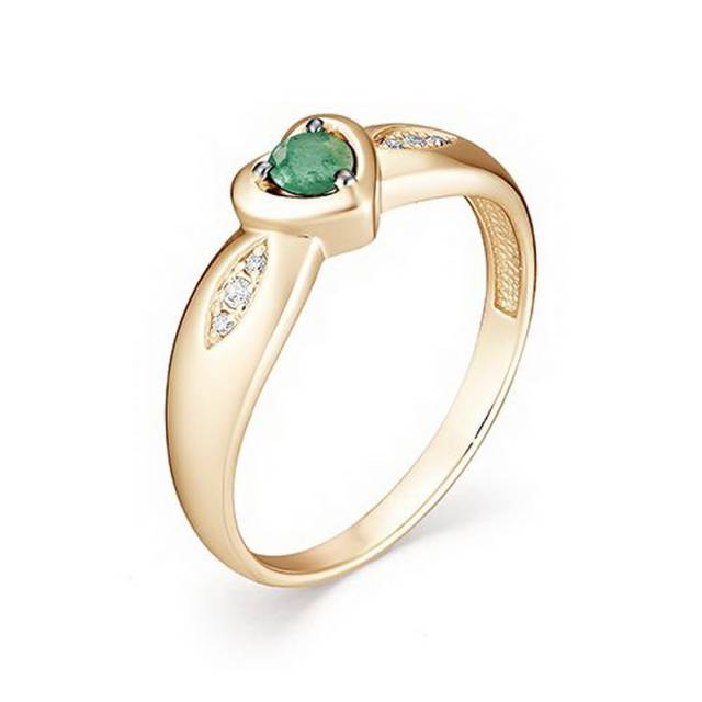Помолвочное кольцо из красного золота с бриллиантами и изумрудом (033145)