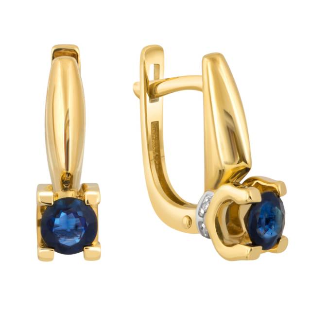 Помолвочное кольцо из жёлтого золота с бриллиантами и сапфиром (040345)