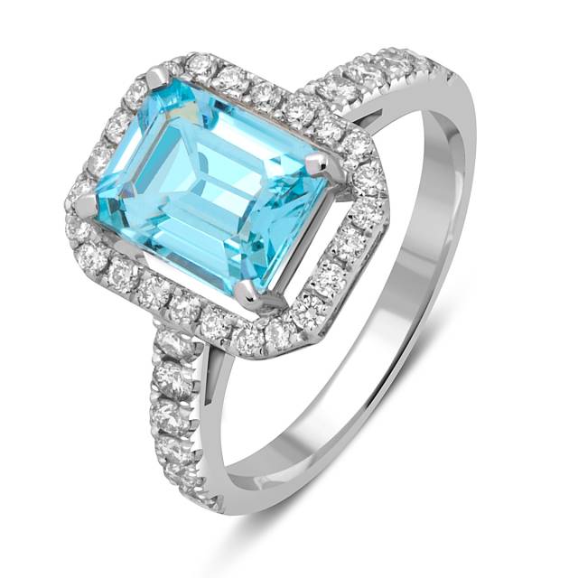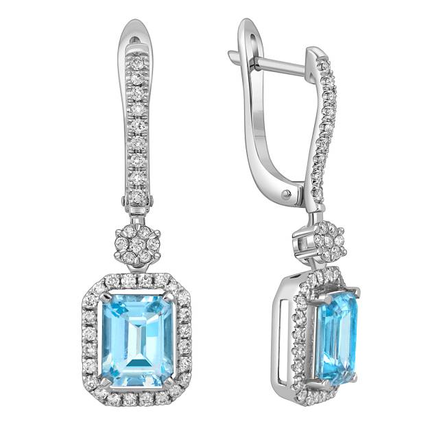 Серьги из белого золота с бриллиантами и аквамаринами (052053)