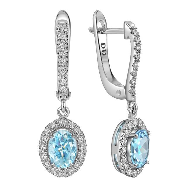 Серьги из белого золота с бриллиантами и аквамаринами (062776)