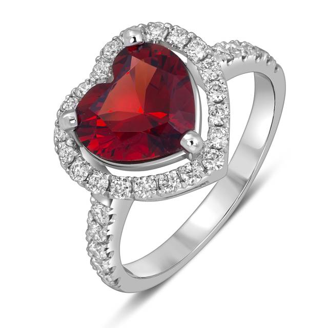 Серьги из белого золота с бриллиантами и грантами "Сердце" (060309)