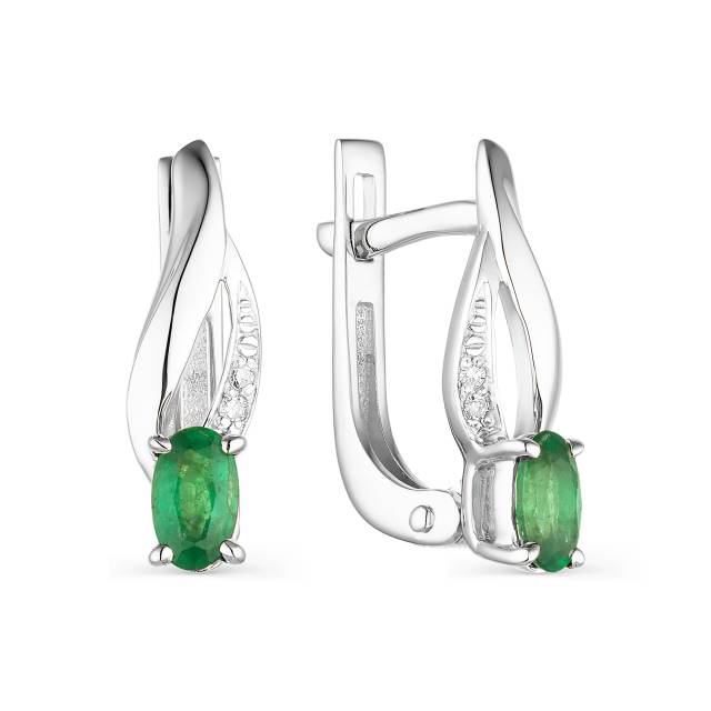 Серьги из белого золота с бриллиантами и изумрудами (049256)