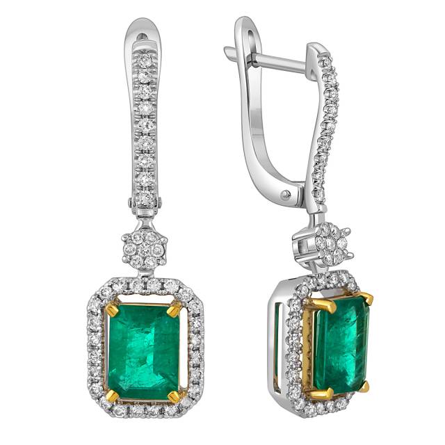Серьги из белого золота с бриллиантами и изумрудами (051214)
