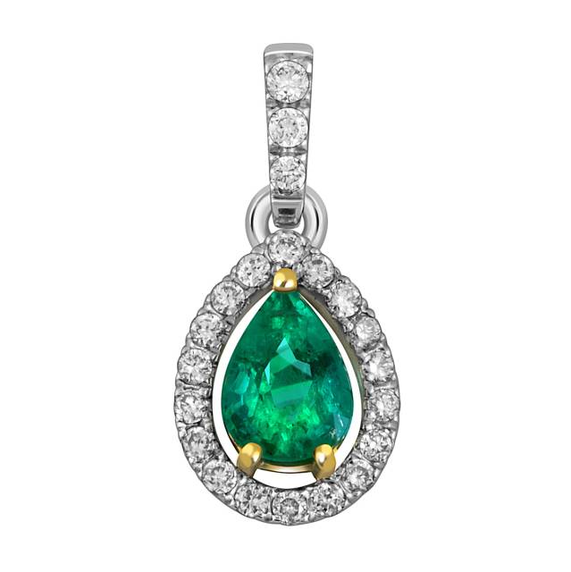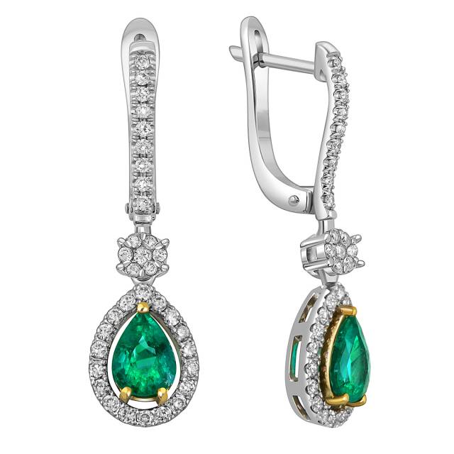 Серьги из белого золота с бриллиантами и изумрудами (052075)