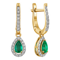 Серьги из белого золота с бриллиантами и изумрудами (052435)
