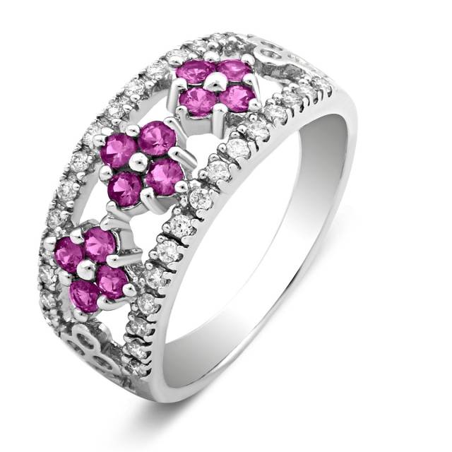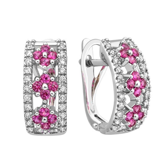 Серьги из белого золота с бриллиантами и рубинами (019099)