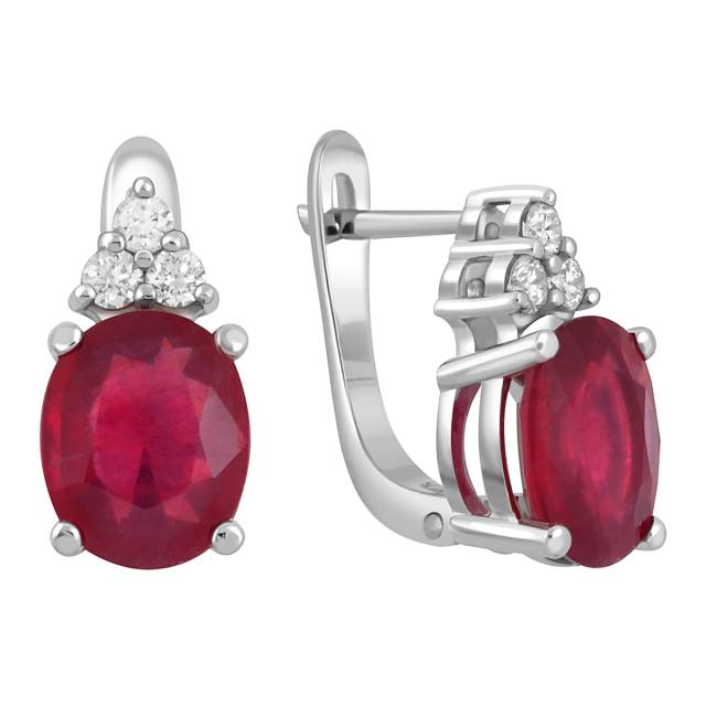 Серьги из белого золота с бриллиантами и рубинами (046926)