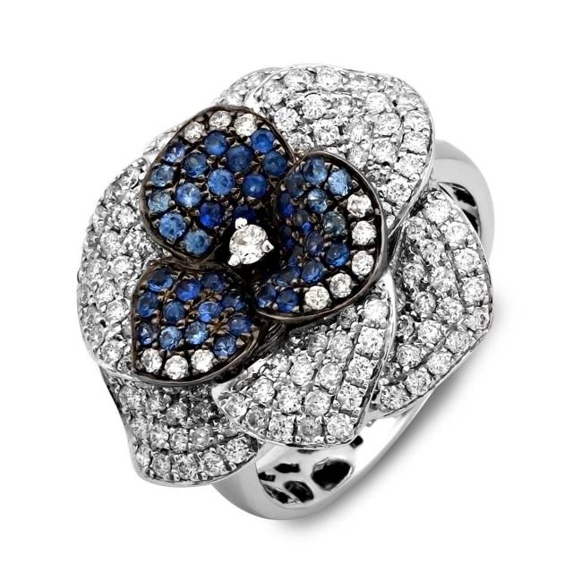 Кольцо из белого золота с бриллиантами и сапфирами (011389)