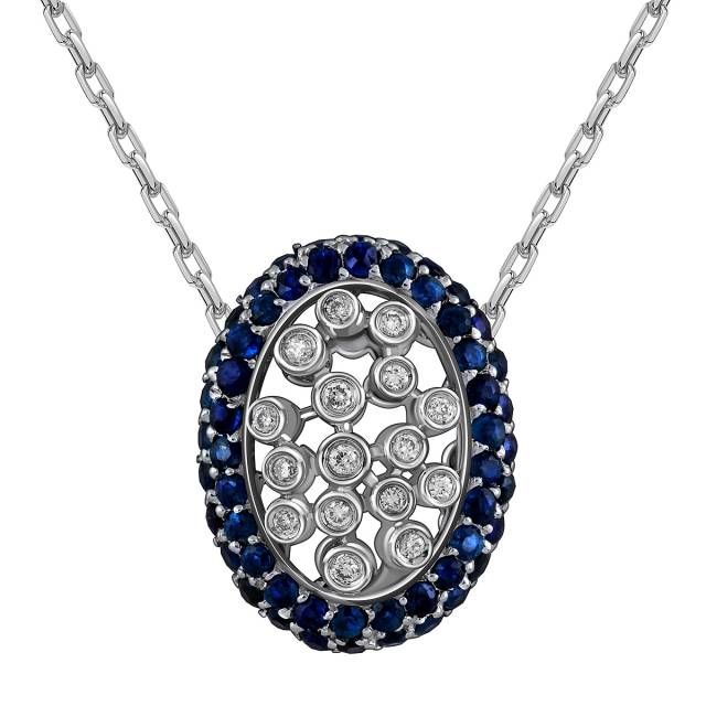 Серьги из белого золота с бриллиантами и сапфирами (019149)