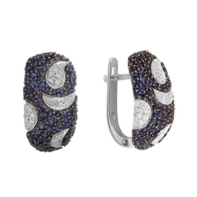 Серьги из белого золота с бриллиантами и сапфирами (024802)
