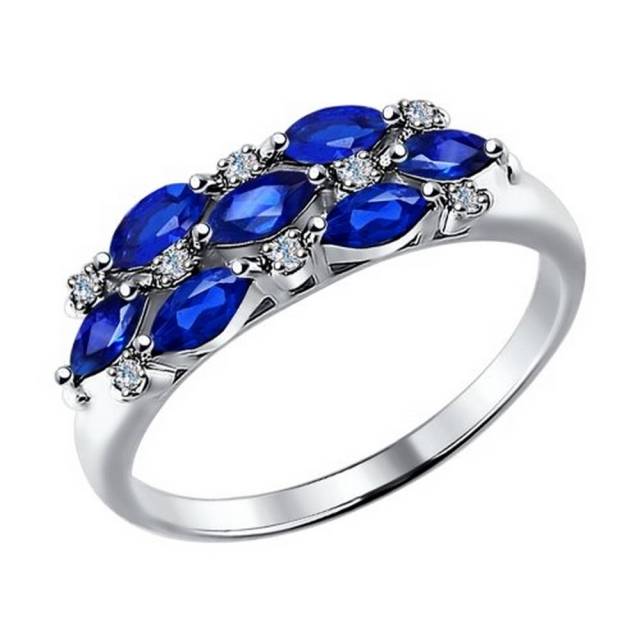 Кольцо из белого золота с бриллиантами и сапфирами (026273)