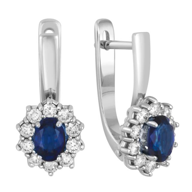 Серьги из белого золота с бриллиантами и сапфирами (039806)