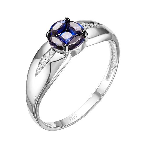 Кольцо из белого золота с бриллиантами и сапфирами (040618)