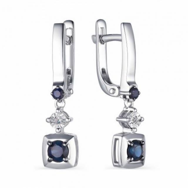 Серьги из белого золота с бриллиантами и сапфирами (041411)