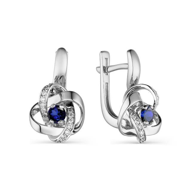 Серьги из белого золота с бриллиантами и сапфирами (041879)