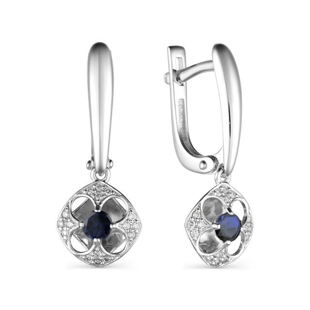 Серьги из белого золота с бриллиантами и сапфирами (041881)