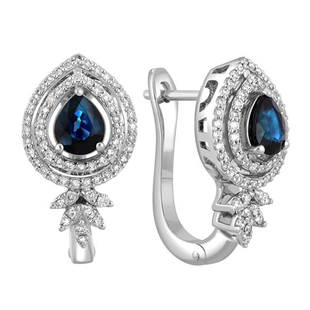Серьги из белого золота с бриллиантами и сапфирами (046114)