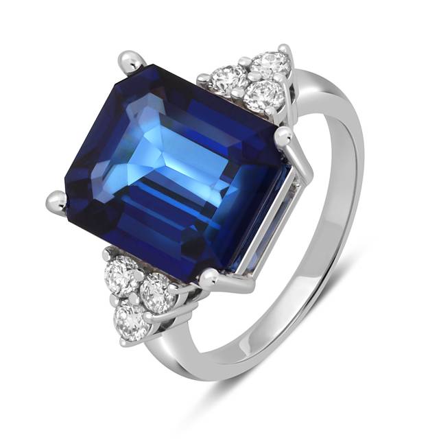 Кольцо из белого золота с бриллиантами и сапфиром (052739)