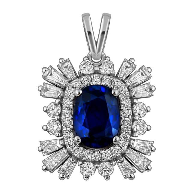 Кулон из белого золота с бриллиантами и сапфиром (054589)