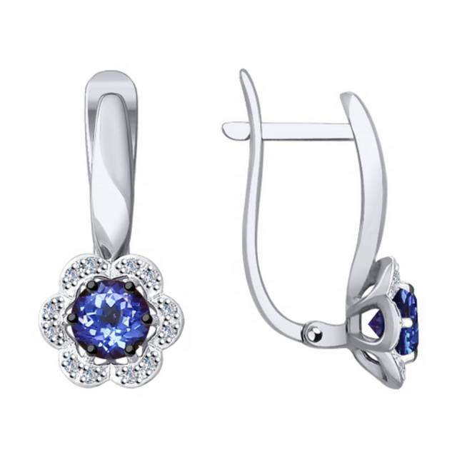 Серьги из белого золота с бриллиантами и танзанитами (038421)