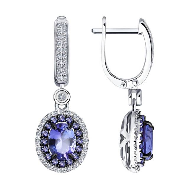 Серьги из белого золота с бриллиантами и танзанитами (046275)