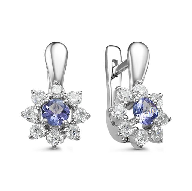 Серьги из белого золота с бриллиантами и танзанитами (051086)