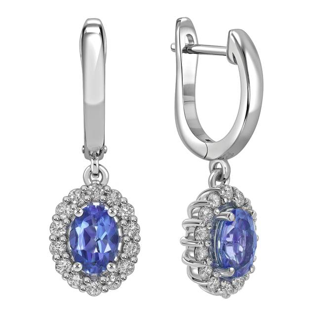 Серьги из белого золота с бриллиантами и танзанитами (061654)