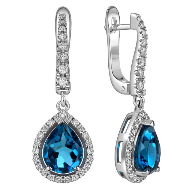 Серьги из белого золота с бриллиантами и топазами (060360)