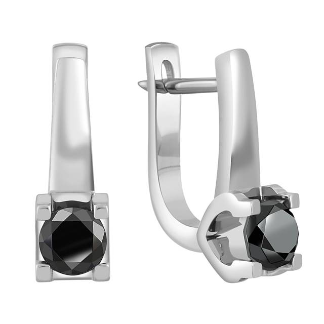 Серьги из белого золота с чёрными бриллиантами (046704)