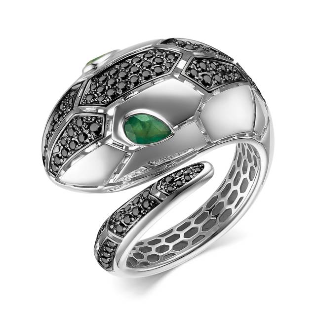 Серьги из белого золота с чёрными бриллиантами и изумрудами (055211)