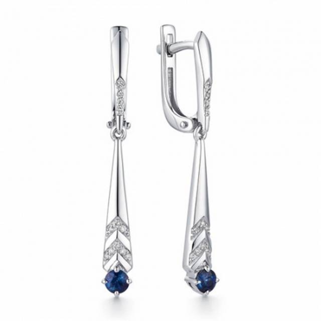 Серьги из белого золота с бриллиантами и сапфирами (043919)