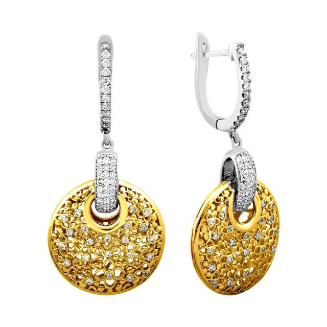 Серьги пусеты из жёлтого золота с бриллиантами (054432)