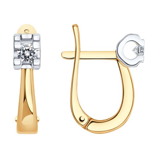 Серьги пусеты из красного золота с бриллиантами (052791)