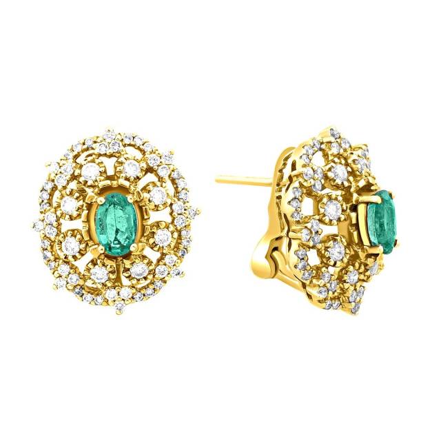 Серьги из комбинированного золота с бриллиантами и изумрудами (019160)