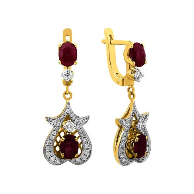 Серьги из комбинированного золота с бриллиантами и рубинами (025822)