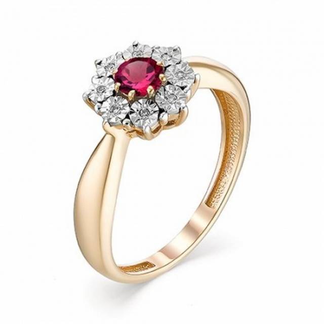 Кольцо из красного золота с бриллиантами и рубином (042009)