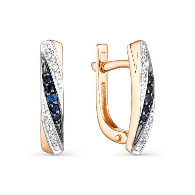 Серьги из комбинированного золота с бриллиантами и сапфирами (044363)