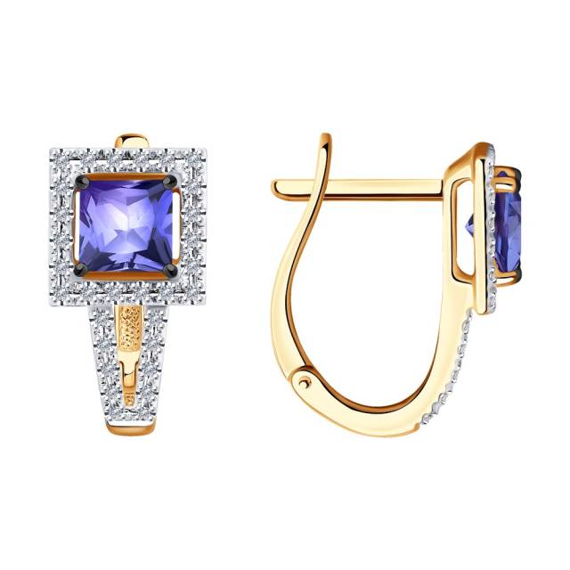 Серьги из комбинированного золота с бриллиантами и танзанитами (045248)