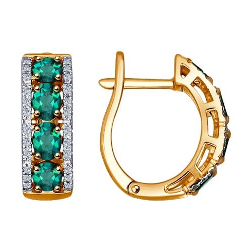 Серьги из красного золота с бриллиантами и изумрудами (035463)