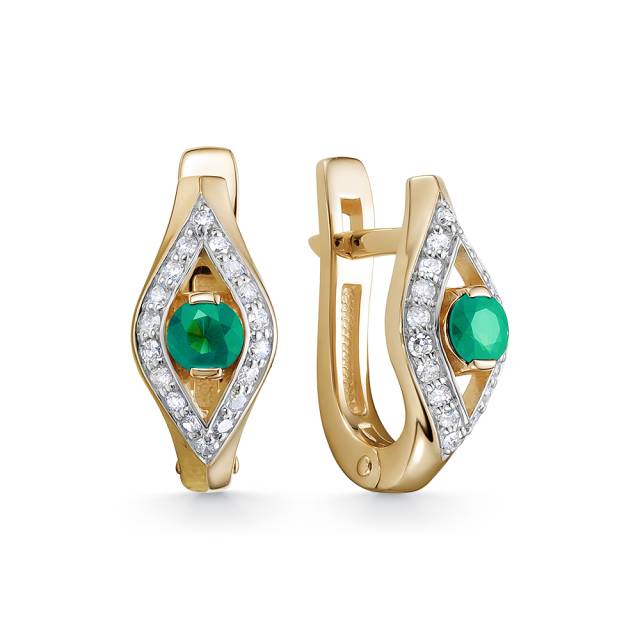 Серьги из красного золота с бриллиантами и изумрудами (053040)