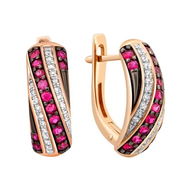 Серьги из красного золота с бриллиантами и рубинами (024068)