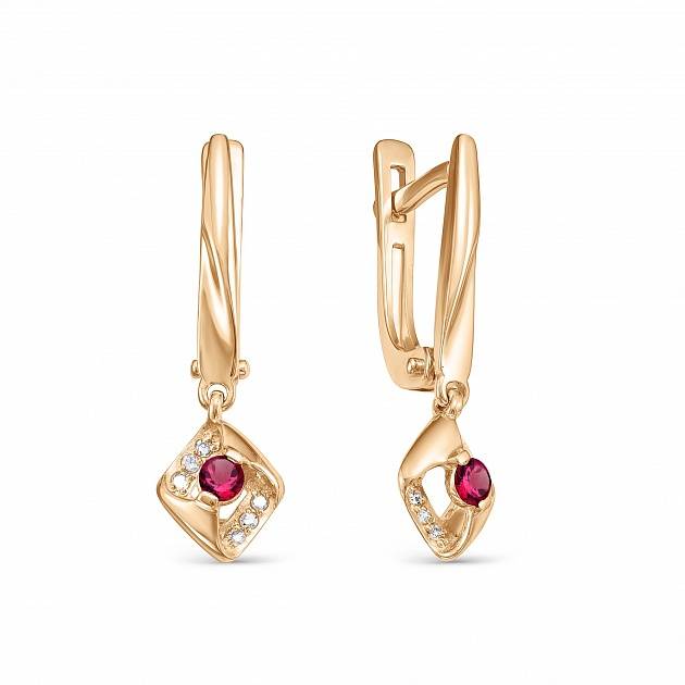 Серьги из красного золота с бриллиантами и рубинами (043144)