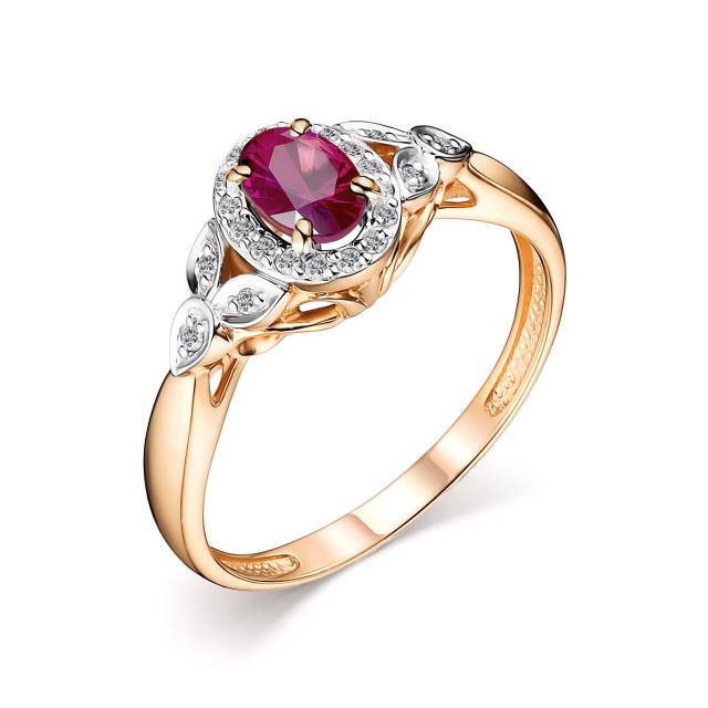 Кольцо из красного золота с бриллиантами и рубином (048762)
