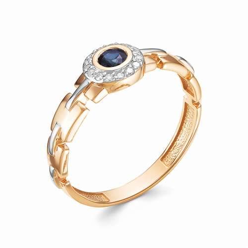 Кольцо из красного золота с бриллиантами и сапфиром (033897)