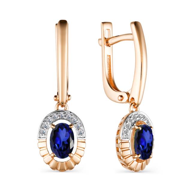 Серьги из красного золота с бриллиантами и сапфирами (042102)
