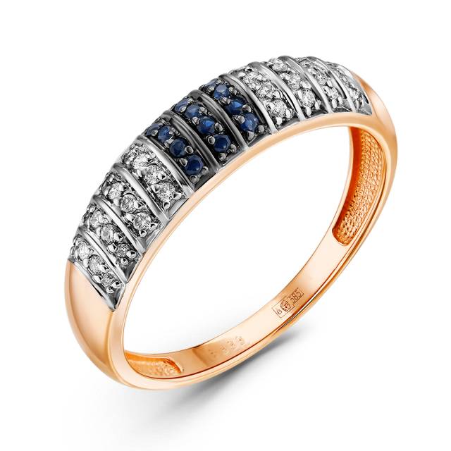 Кольцо из красного золота с бриллиантами и сапфирами (060094)
