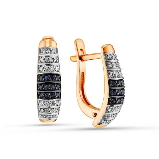 Серьги из красного золота с бриллиантами и сапфирами (060108)