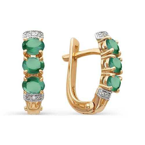 Серьги из красного золота с бриллиантами и зелёными агатами (042056)