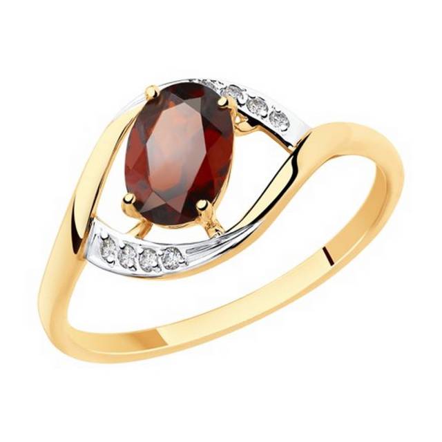 Кольцо из красного золота с гранатом и фианитами (047422)